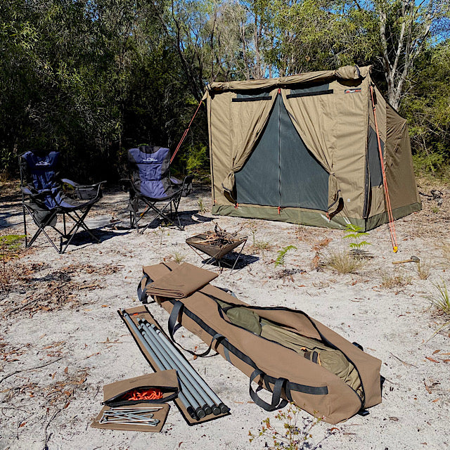 We’ve tested this bag to the Gibb River Road and back to Hervey Bay. Through soaking rain and dusty conditions. Treat our RV bag with “canvas care” (in our menu section) before use and enjoy our Oztent replacement bag for many years to come on the tracks.