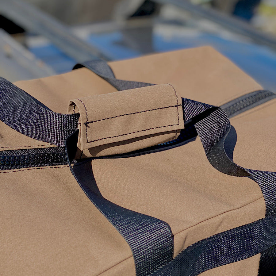 Made from HD Australian canvas, Australian Made webbing handles and a strong YKK zip. Waterproof zip?? Nope! Not for us… Why? Well, we camp - a lot! And are yet to pack up our tent with a dry base or dry roof thanks to morning due. Having a waterproof zip just makes for a suffocation chamber and that equals mould. There is no shortcut- always put up tent post camp to ensure 100% dry.
